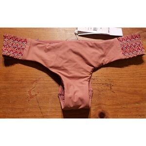PILYQ LOTUS SMOCKED TAB TEENY EMBROIDERED CINCHED SIDE BIKINI BOTTOM NWT