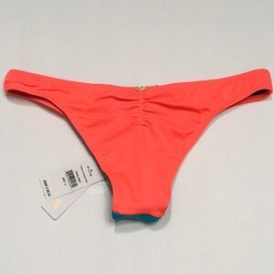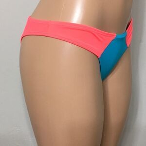 PILYQ Daiquiri color block teeny bottom. Partway ruched down the back. Fully lined. Color is brighter than the stock photo.