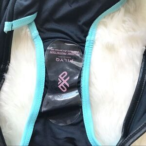 PILYQ Banded Full Bikini Bottom Low Rise Colorblock Aqua Blue Black Small New