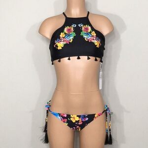 PILYQ tasseled embroidered bikini set. D-cup/M-bottom. NWT