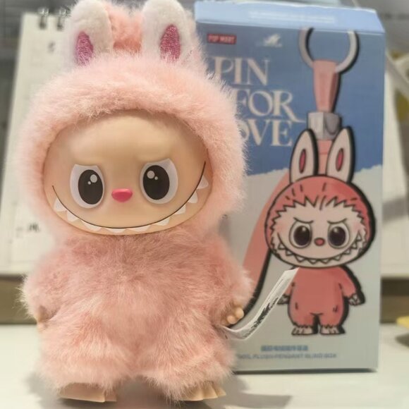 It’s a tiny, fluffy collectible with soft grey fur, iconic bunny ears, and Labubu’s signature mischievous grin.