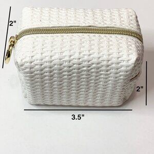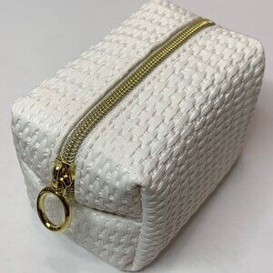 - MINI BAG [ White woven embossed material w/ gold zipper & oval gold pull ]