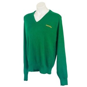 PINE STATE Vintage V-Neck Green Embroidered Irish Mist Sweater Size XL