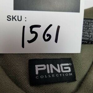 PING Men's Shirt medium Olive Regular Fit Polo Shirt Short Sleeve Wing Collar