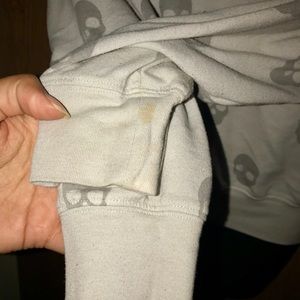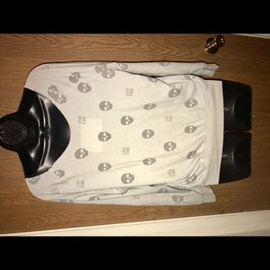 May fit S/M/L. It’s loose fitting, Off shoulder. Pls zoom in to view flaw that’s shown. any questions pls ask away 😇