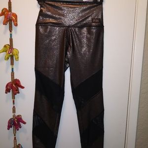 Pink ultimate high-waist leggings/quick dry facric/Gold sequence w/black/NWT/XS/XP