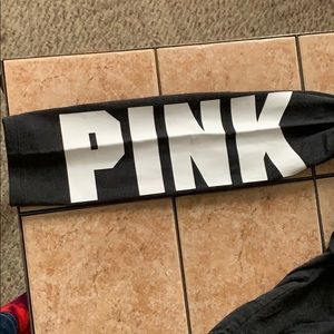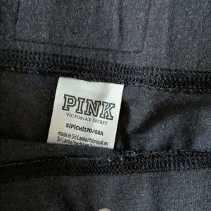 Pink grey leggins with the word pink on both ankles