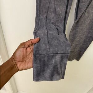 Stylish gray ribbed joggers with a drawstring waist. Perfect for casual wear.