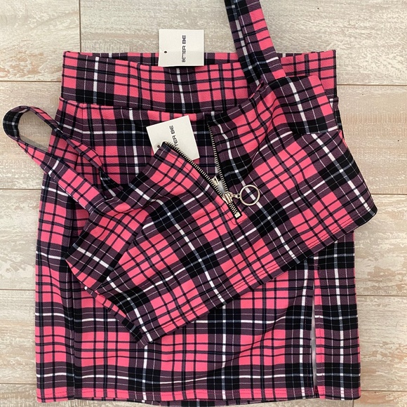 pink and black plaid 2 piece skirt set. Brand new with tags. Size small