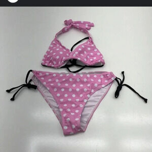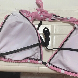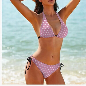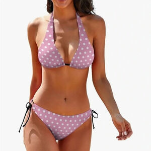 PINK AND WHITE POLKA DOT STRING BIKINI SET SIZE SMALL