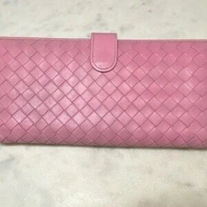 PINK Authentic Bottega Veneta Intrecciato Snap Long Wallet