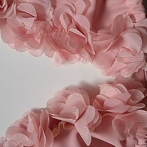 A super soft dusty pink-flirty- 2 Pc.-Suit with matching color- sheer-petals along the entire declottege lines-