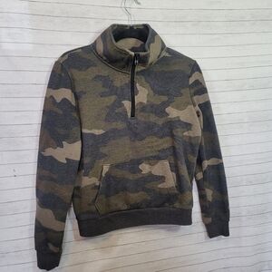 PINK BY VS CAMO QUARTER ZIP SWEATSHIRT, SZ XS