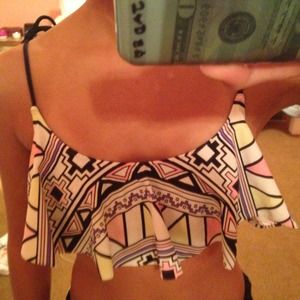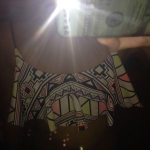 Tribal print:yellow pink whit and black, slightly faded. Worn 2 times