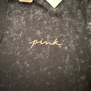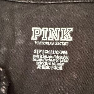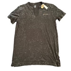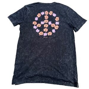 PINK ~ Black Acid Wash Tshirt ~ Cut Vneck ~ floral peace sign on back ~ size S