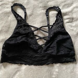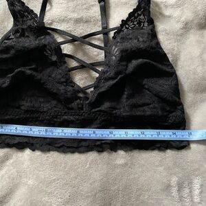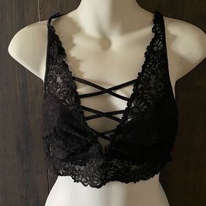 Elegant black lace bralette with intricate floral detailing. Perfect for a comfortable and stylish fit.