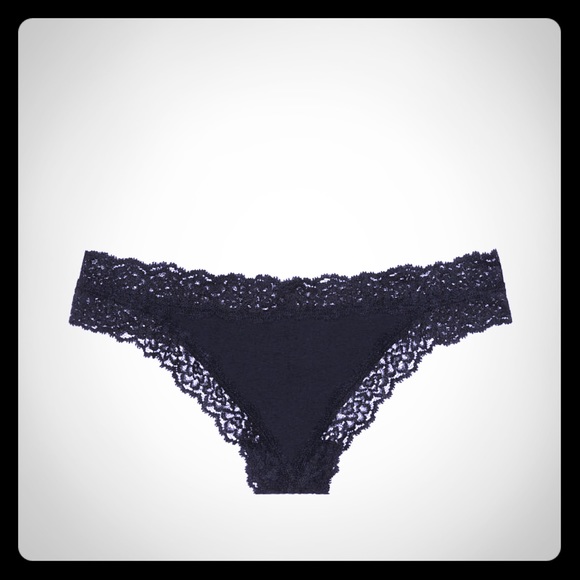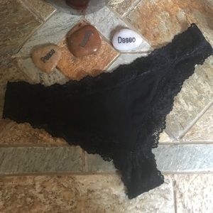 PINK Black Lace Trim Thong