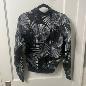 Stylish jacket with a bold leaf print. Features a zip-up front and ribbed cuffs. Perfect for casual wear.