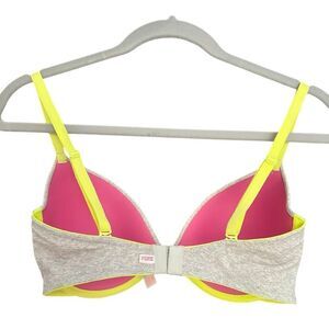PINK Bra Demi Buste Gray Neon Yellow Pink Sz 34DD. MINT Condition