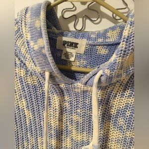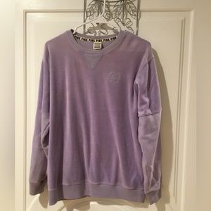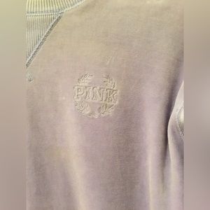 PINK 3 items: blue & cream hooded sweater, gray sweatshirt and lilac velour sweatshirt. Can separate. 💜