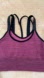 Excellent bralette by PINK in a pretty plum color with small, horizontal black stripes. Has double straps and an inner cloth liner. The straps are at a fixed length. Wide bottom band for a comfortable but secure fit.