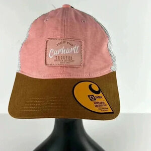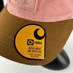 RUGGED WEAR CARHARTT TRUSTED QUALITY AND DURABILITY SINCE 1889 CAP PINK WHITE TAN HAS A FORCE SWEATBAND AND ADJUSTABLE NWT