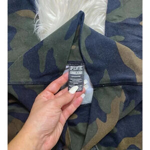 Victoria’s Secret PINK active/workout leggings in green and brown camouflage/fatigue pattern. Size small. Good used condition, with some fading and piling between the legs (see last pic).