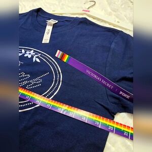 NWT. PINK VS new spring collection! Stylish navy blue graphic tee perfect for casual outings. Comfortable and trendy design.