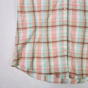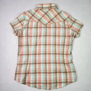 PINK Cattlelac Women's Western Short Sleeve L Peach Plaid Snaps Cowgirl Rodeo