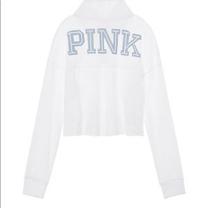 PINK Cropped Varsity Quarter Snap Long Sleeve Top
