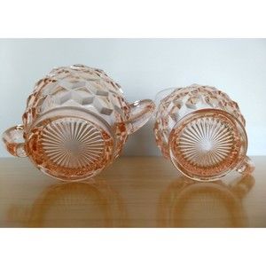 PINK DEPRESSION GLASS Creamer & Sugar Bowl Set Jeanette DIAMOND CUBIST Vintage