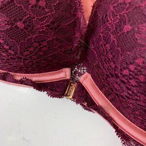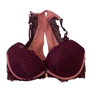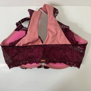 PINK Date Push-up  Burgundy Lace Front Close Underwire Bra Size 32DD