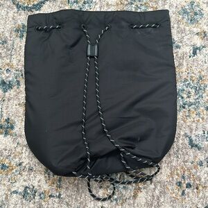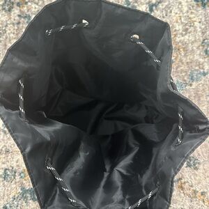 This cute drawstring backpack is perfect for all of your beach needs. It‘ll serve as the perfect over-night bag as well. It has a large capacity, so you don‘t need to leave anything behind. See pictures for more details.