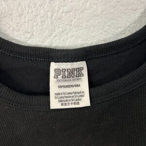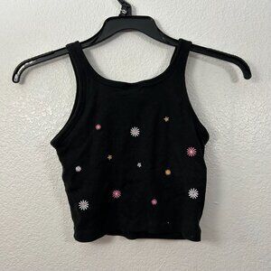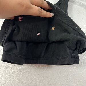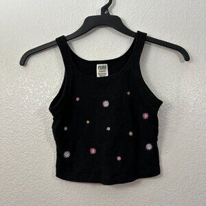 PINK Embroidered Flower Cropped Tank Top Shelf Bra Floral Size S in black.