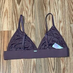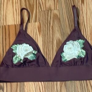 PINK Embroidered Roses, Mauve Triangle Bralette, Large