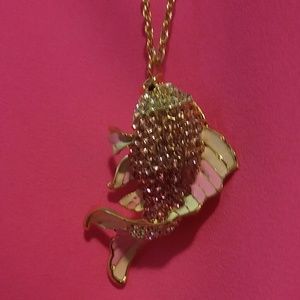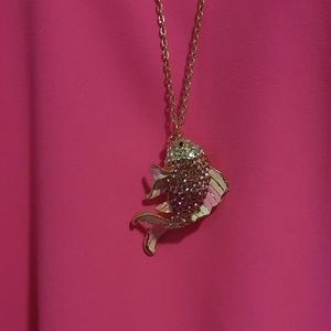 Beautiful PINk rhinestone fish necklace