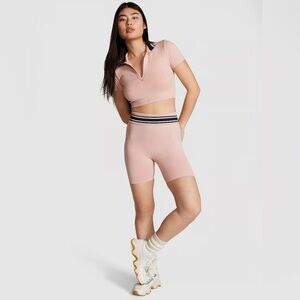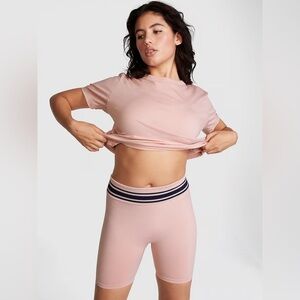 PINK FLIP IT SEAMLESS FOLDOVER BIKE SHORTS