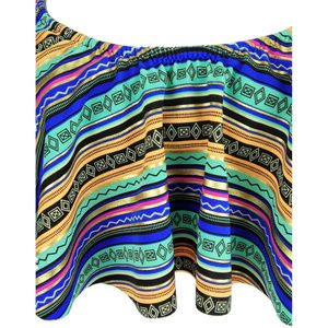 Super cute little strappy bralette! This features: Bright Boho Design, a flounce or ruffled front, strappy-type straps, and a racer back. Pit to Pit: 13"