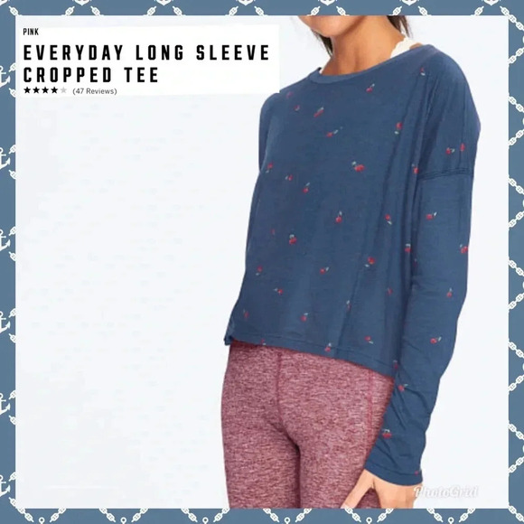 🆕PINK GIRLFRIEND LONG SLEEVE CHERRIES CROPPED TEE M🆕