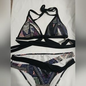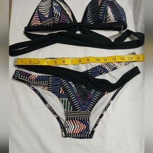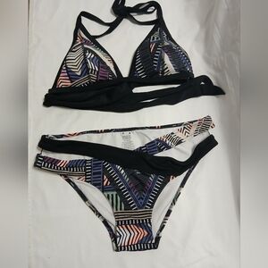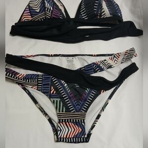 Dive into style with this chic geometric bikini set. Featuring a striking black base with vibrant multicolor patterns, this swimwear is perfect for making a splash. Enjoy comfort and fashion at the beach or pool.