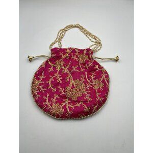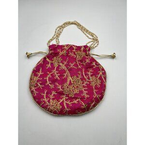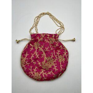 PINK Gold Clutch Silk Bag Boho Formal/POTLI /Purse Applique Beaded SEE ALL