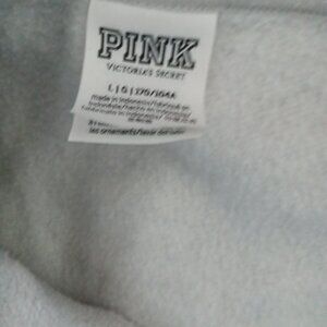 PINK brand. Discontinued gray hoodie with PINK logo in white vinyl. Vinyl is in perfect condition with no cracks. No stains nor holes. No damage. Strings are still intact. Excellent condition. Size large.
