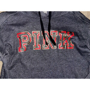 PINK Gray Red & Gold Logo Hoodie Pullover Style Sweatshirt Size S Small