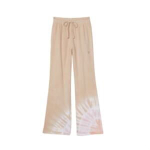 Peachy color with tie-dyed design at the bottom of the legs. Soft and comfortable with flared legs, elastic waist with drawstring. 32" inseam