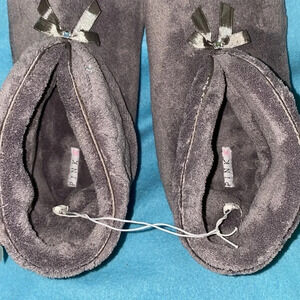 PINK K Claudia fleece slipper booties gray bows rhinestones NEW size 11-12 XL