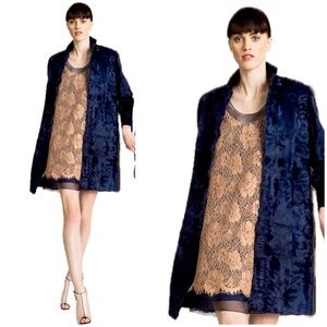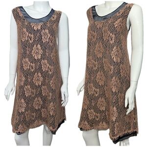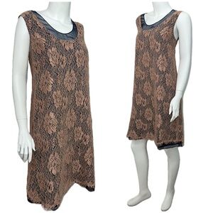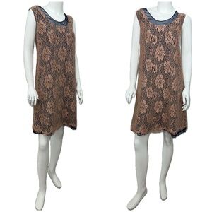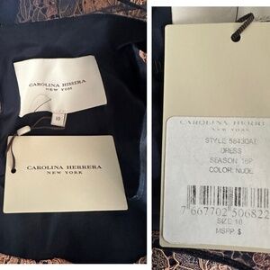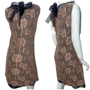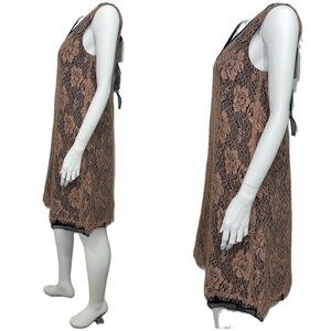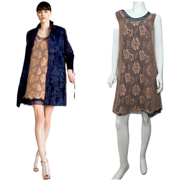 olina Herrera Pink Lace Navy Silk A-Line Dress