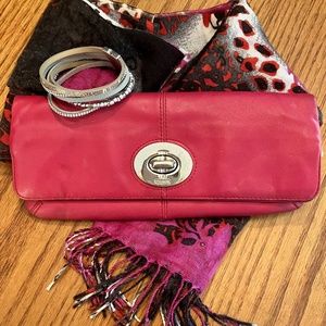 Genuine COACH bright pink leather slim turn lock wallet with top load compartment and zipper compartment. Excellent, clean condition with very little signs of wear.