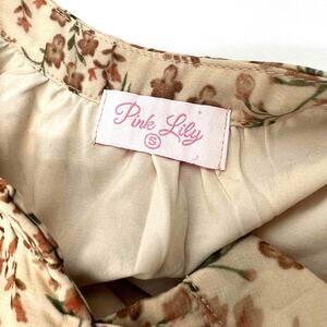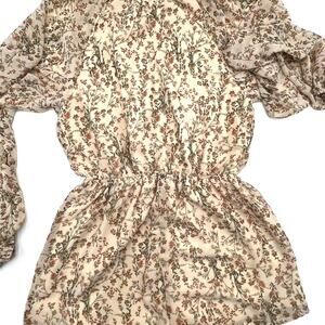 PINK LILY Size Small Brown Cream Floral Short Romper Jumpsuit Dress Boho Cottage