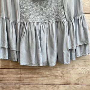 EXCELLENT CONDITION PINK LILY SMOCKED TOP WITH BELL SLEEVES IN BLUE