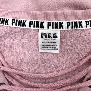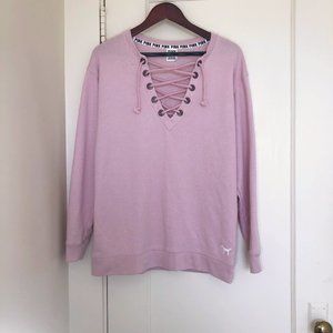 Victoria Secret Pink Lace Up Campus Crew Top Pullover Sweatshirt Long Sleeve Size S